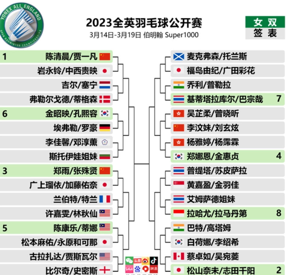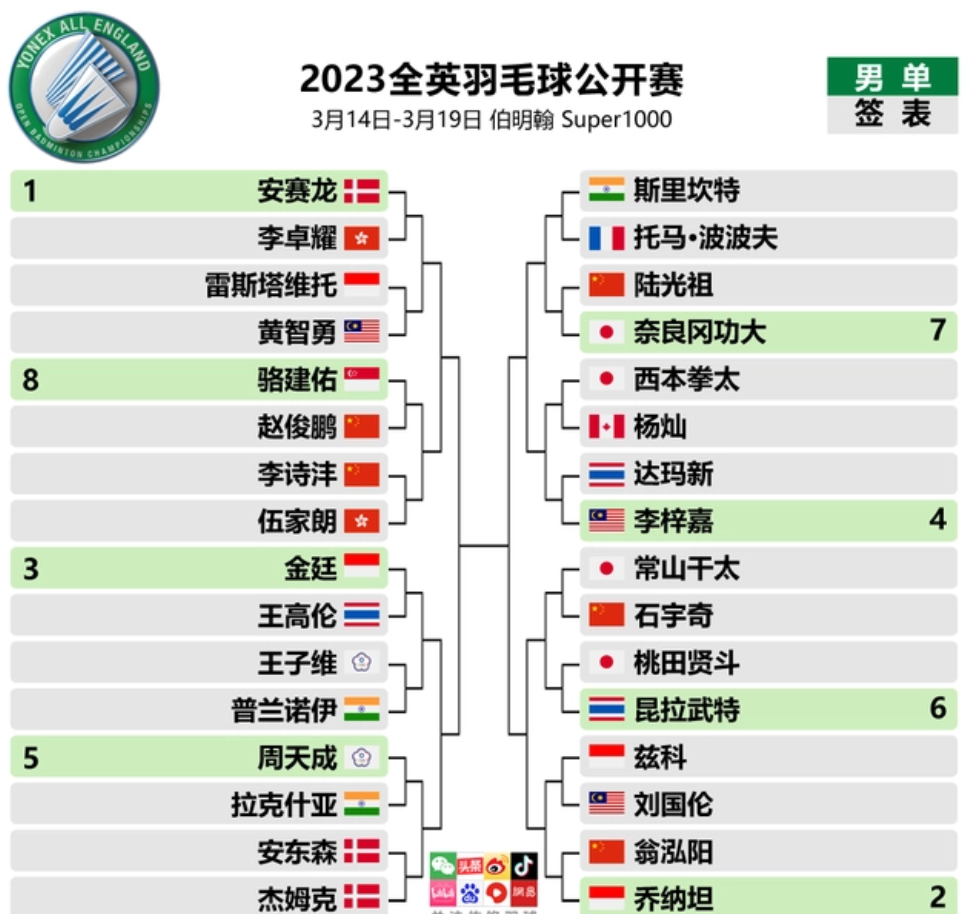 一年一度的全英羽毛球公开赛是历史最悠久、最负盛名的羽毛球大赛之一,其冠军含金量仅次于奥运会、世锦赛,共设置男单、女单、男双、女双及混双等5个项目,不设资格赛,只有排名世界前32位的选手或组合方有资格参赛。去年全英公开赛,中国队虽然在5项中有4项进入四强,但只有王懿律/黄东萍拿到决赛门票,“黄鸭”组合最终在金牌战中负于日本组合渡边勇大/东野有纱。 往期推荐 家门口的国家级赛事报名啦!短视频大赛同时启动跑友们,家门口这场国家级赛事不要错过了!福利多多哦~厦门大学外文学院和福建省广播影视集团科技文体传媒中心签定战略合作协议你的“加星”和“在看” 对我们非常重要 点击下方关注我们 设为星标★更方便  您好!今天的内容《 福建荣耀|2023全英羽毛球公开赛,5位闽将为国出战!_羽毛球 - 世界杯,欧洲杯,天下体育,足球,世界杯,篮球,羽球,乒乓球,球类, 棒球 》 分享到这里,想了解更多,请关注波盈体育。您的关注是给小编最大的鼓励。 免责声明:文中图片、文字引用至网络,版权归原作者所有,如有问题请联系删除! Tags: |